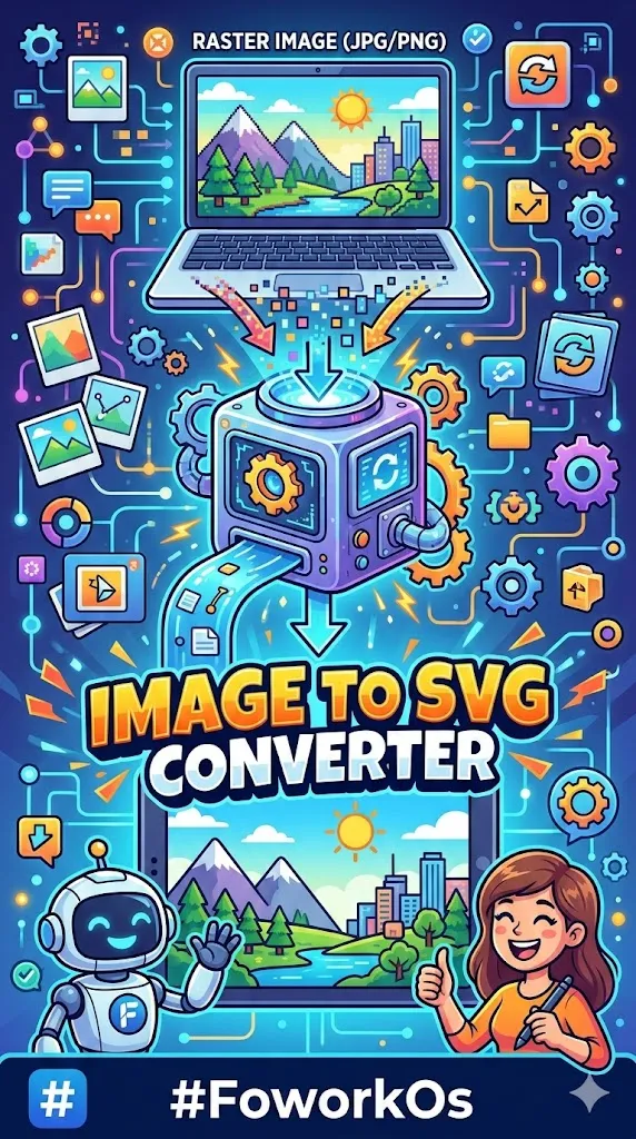 Free client-side Image to SVG converter. Turn PNG and JPG files into scalable vector graphics with edge smoothing, noise reduction, and clean code export.